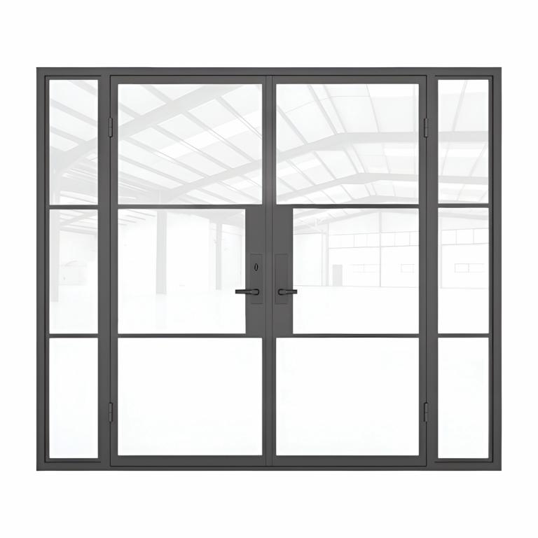 | 6 PANE FRENCH DOOR WITH SIDELIGHT RH INSWING #R FRENCH Style 94 X 81 RIGHT HAND INSWING FLAT BLACK Color CLEAR Glass STEEL Material TANGO - 305A20 - BL - DM - DUMMY, TANGO - 305A10 - BL - ET - ACTIVE DOUBLE SQUARE TOP wSidLights, special, clearance (Pull Handles and Locks are price separately) | |