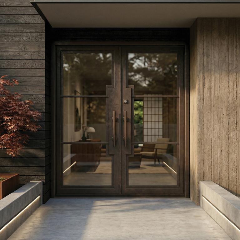 | FRENCH DOOR 6 LIGHT RH #R OPERABLE GLASS FRENCH Style 70 X 81 RIGHT HAND INSWING DARK COPPER Color LOW-E CLEAR Glass STEEL Material PULL HANDLE #029 VITO - D107 - ORB -S - DOUBLE SQUARE TOP Modern, Contemporary Style wOperableGlass, clearance (Pull Handles and Locks are price separately) | |