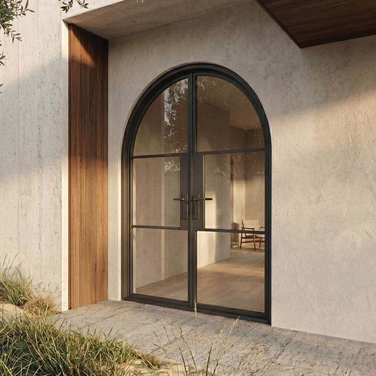 | 6 PANE FRENCH DOOR ROUND TOP RH FRENCH Style 72 X 96 RIGHT HAND INSWING FLAT BLACK Color LOW-E CLEAR Glass STEEL Material TANGO - 305A20 - BL - DM - DUMMY, TANGO - 305A10 - BL - ET - ACTIVE DOUBLE FULL ROUND Modern, Contemporary Style (Pull Handles and Locks are price separately) | |