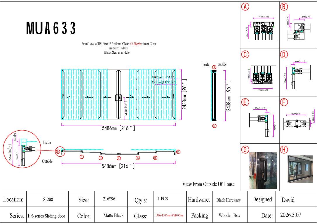 | ALUMINUM SLIDING DOOR WITH IMPACT GLASS (PVB) SM ALUMINIUM SLIDING Style 216 X 96 SLIDING FLAT BLACK Color LOW-E CLEAR - PVB CLEAR (IMPACT) Glass ALUMINUM Material SQUARE TOP Modern, Contemporary Style Thermal Break, special, clearance | |