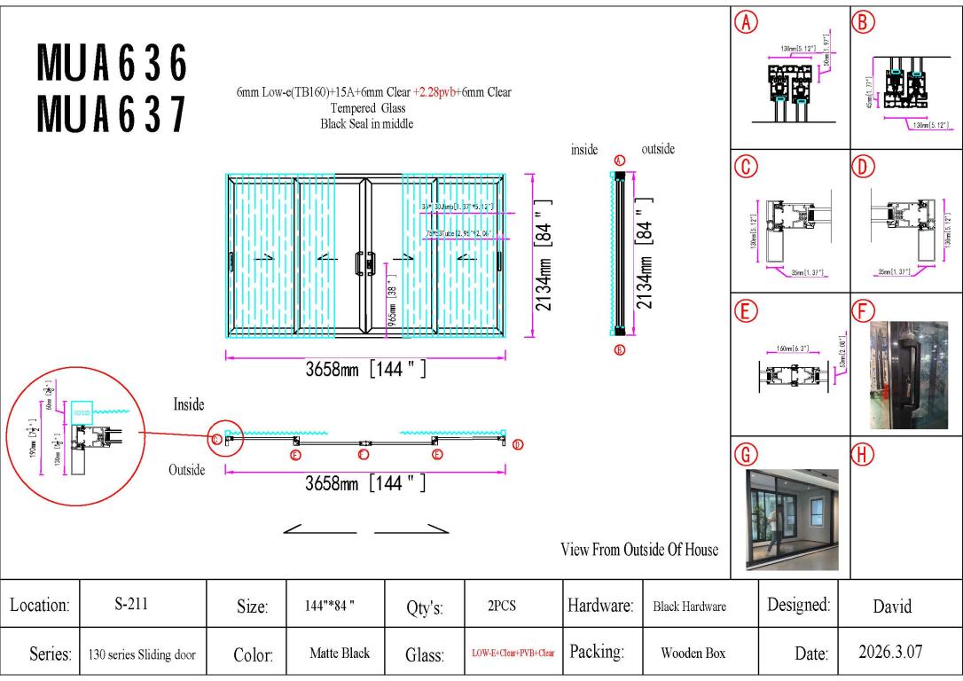 | ALUMINUM SLIDING DOOR WITH IMPACT GLASS (PVB) SM #R ALUMINIUM SLIDING Style 144 X 84 SLIDING FLAT BLACK Color LOW-E CLEAR - PVB CLEAR (IMPACT) Glass ALUMINUM Material SQUARE TOP Modern, Contemporary Style Thermal Break, special, clearance | |