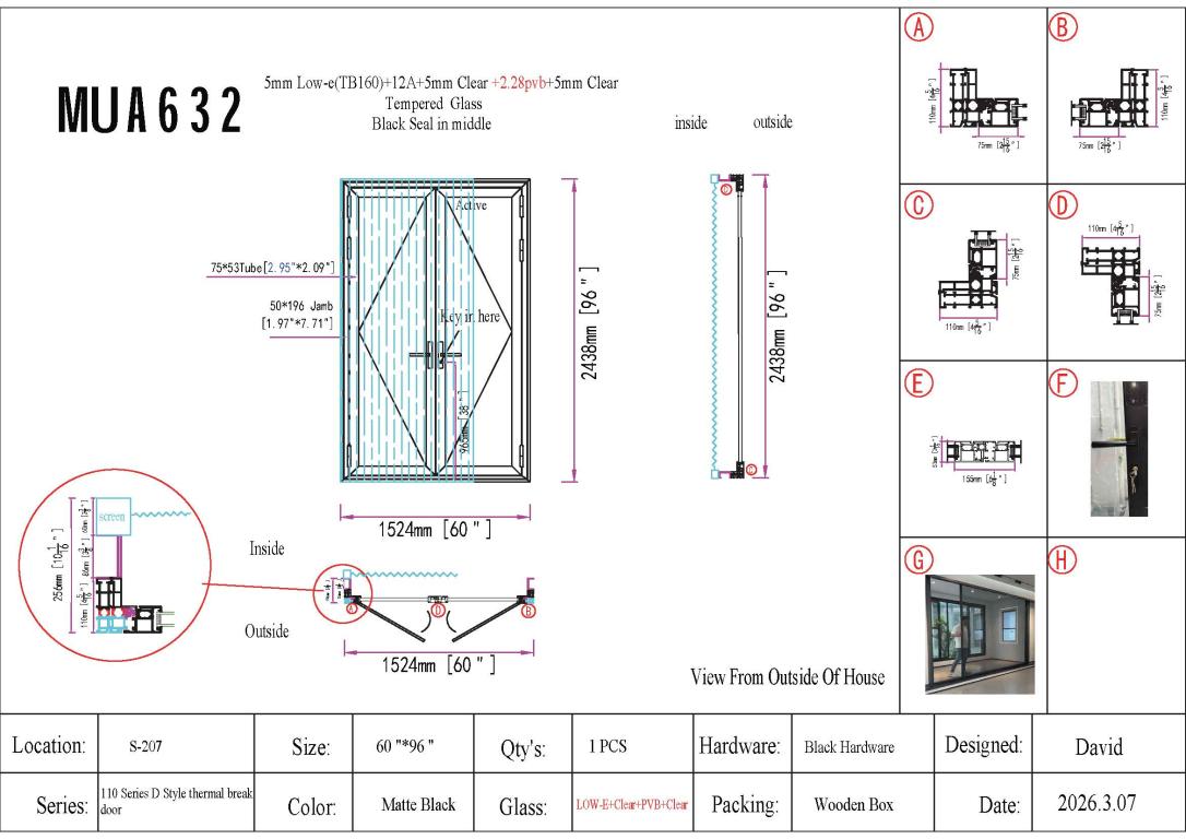 | ALUMINUM DOOR LH OUTSWING WITH IMPACT GLASS (PVB) #R ALUMINIUM SWING Style 60 X 96 LEFT HAND OUTSWING FLAT BLACK Color LOW-E CLEAR - PVB CLEAR (IMPACT) Glass ALUMINUM Material CMECH DOUBLE SQUARE TOP Modern, Contemporary Style wScreen, Thermal Break, ImpactProof (Pull Handles and Locks are price separately) | |