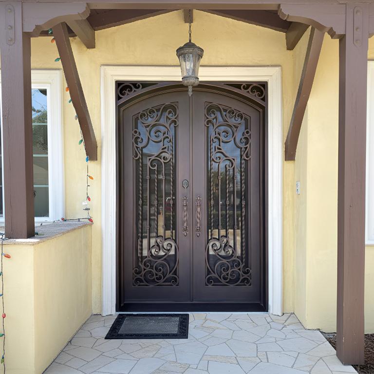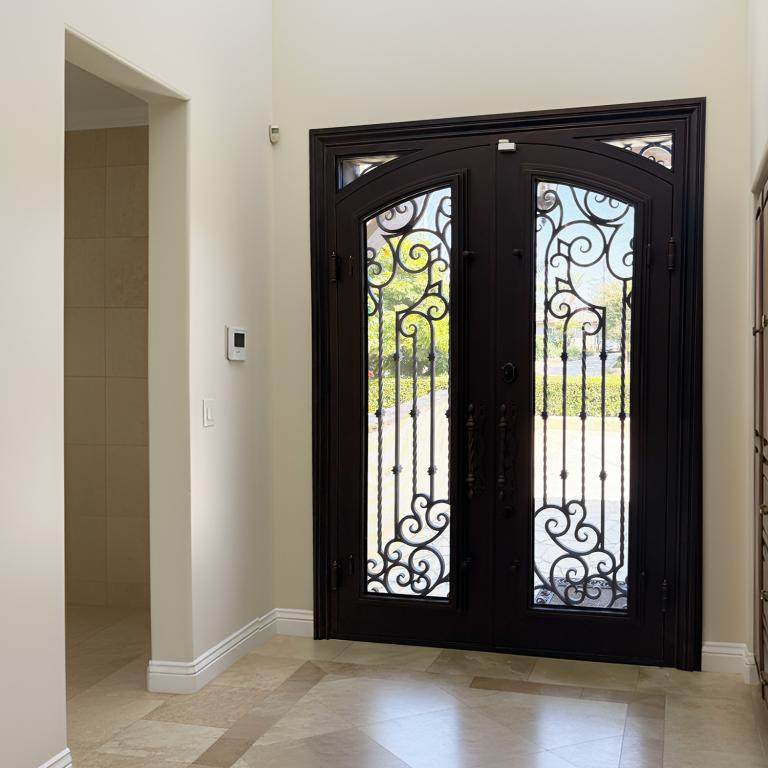 | TAMPA LH WROUGHT IRON Style 72 X 96 LEFT HAND INSWING MEDIUM COPPER Color RAIN Glass STEEL Material PULL HANDLE #019 VITO - D107 - BL - S - DOUBLE SQUARE TOP Mediterranean, Spanish Style wScreen, Residential, Commercial (Pull Handles and Locks are price separately) | |