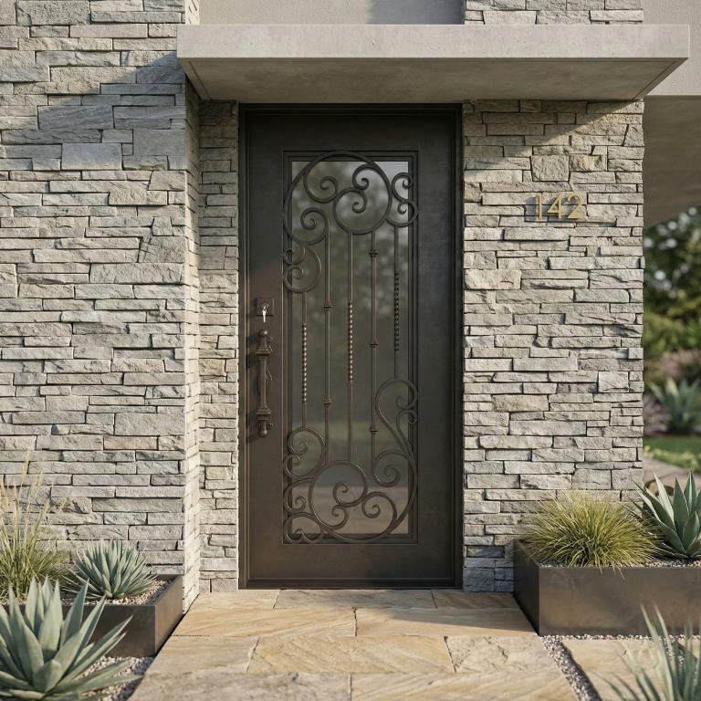 | ELITE 2773 RH WROUGHT IRON Style 37 X 81 RIGHT HAND INSWING MEDIUM COPPER Color RAIN Glass STEEL Material PULL HANDLE #020 VITO - D107 - BL - S - SINGLE SQUARE TOP Mediterranean, Spanish Style wScreen, solid, Residential, Commercial (Pull Handles and Locks are price separately) | |