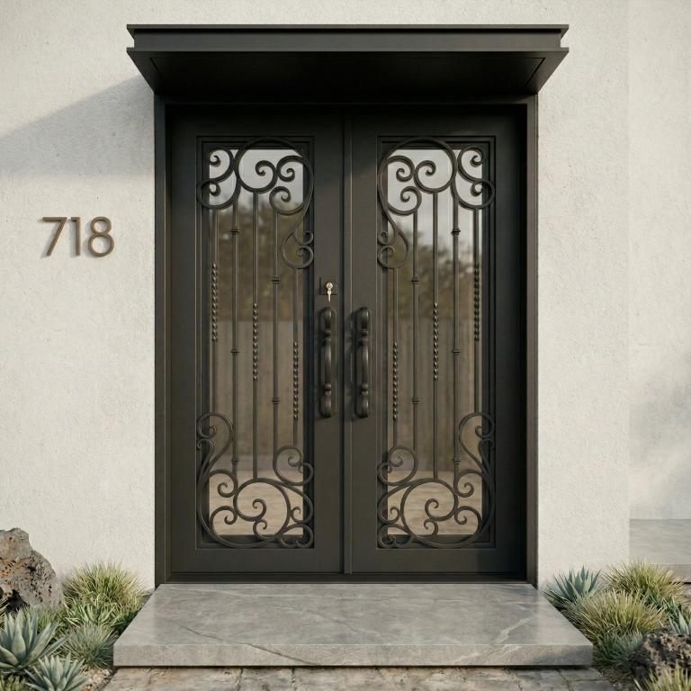 | ELITE 2773 RH WROUGHT IRON Style 61 X 81 RIGHT HAND INSWING MEDIUM COPPER Color RAIN Glass STEEL Material PULL HANDLE #012 VITO - D107 - BL - S - DOUBLE SQUARE TOP Mediterranean, Spanish Style wScreen, Residential, Commercial (Pull Handles and Locks are price separately) | |